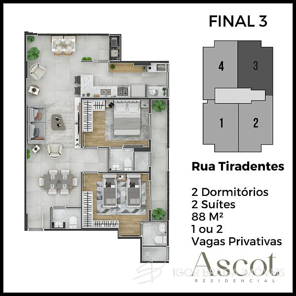 2 dormitórios (2 suítes)