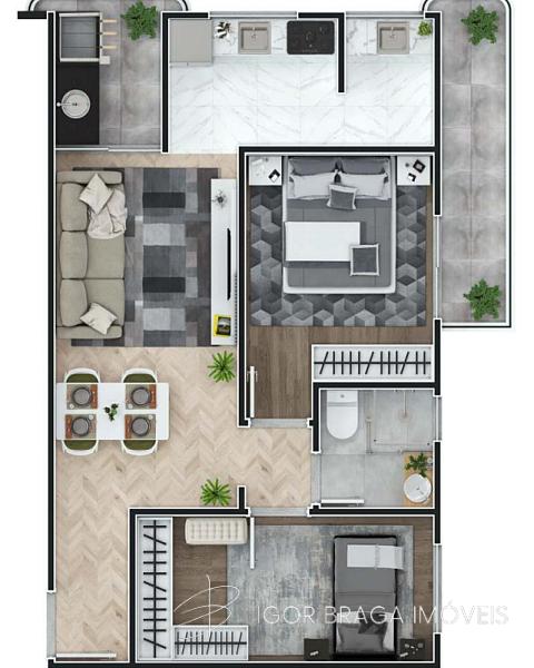 2 dormitórios (1 suíte)