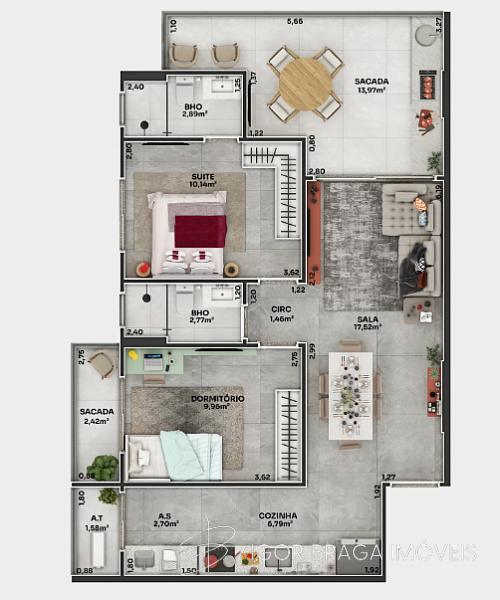 2 dormitórios (1 suíte)