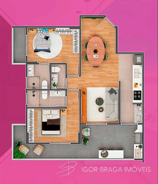 2 dormitórios (2 suítes)