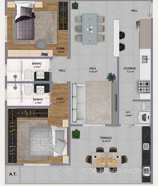 2 dormitórios (1 suíte)