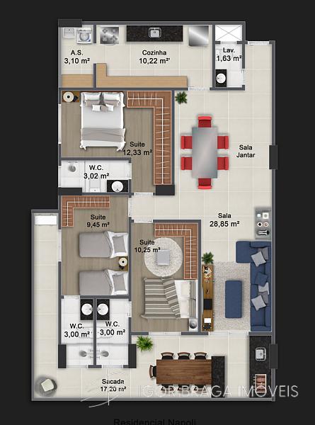 3 dormitórios (3 suítes)