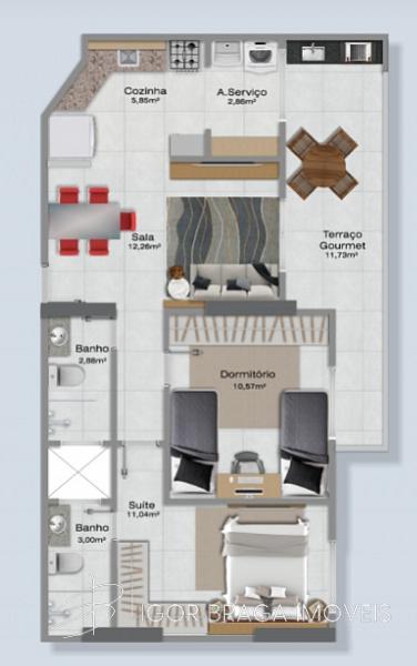 2 dormitórios (1 suíte)