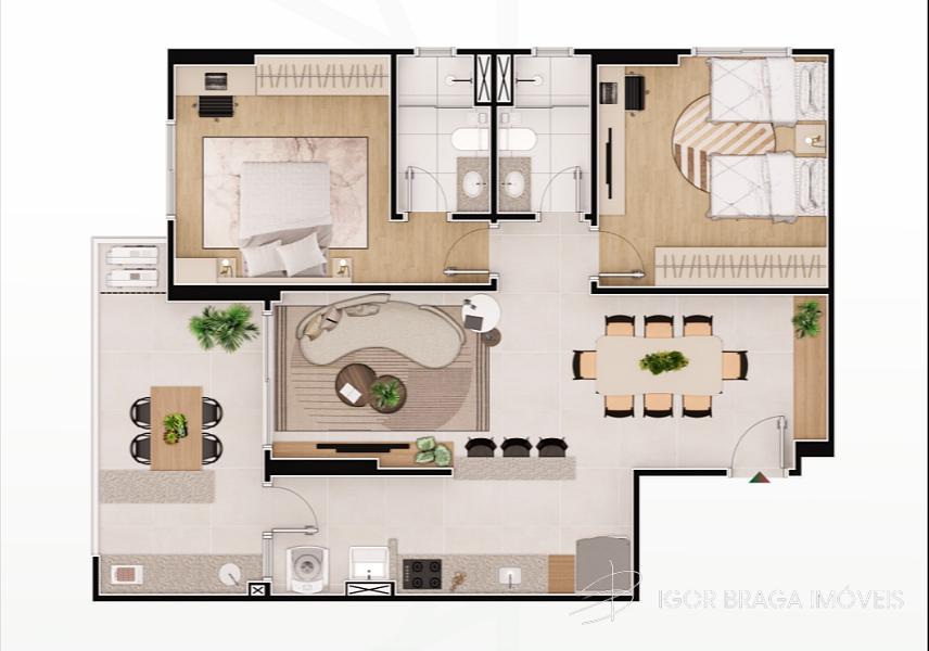 2 dormitórios (1 suíte)