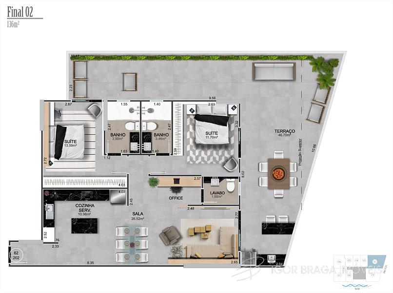129,00 m² de área privativa