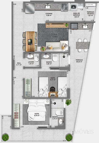2 dormitórios (2 suítes)