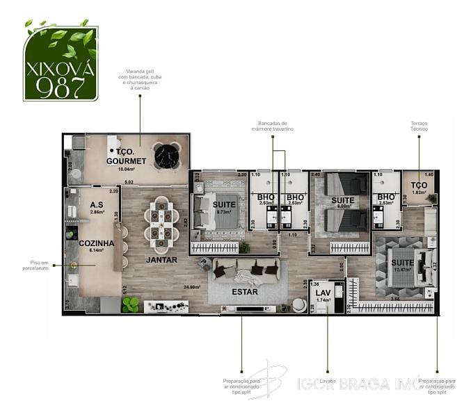 3 dormitórios (3 suítes)