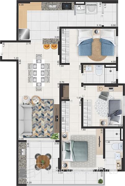 3 dormitórios (1 suíte)