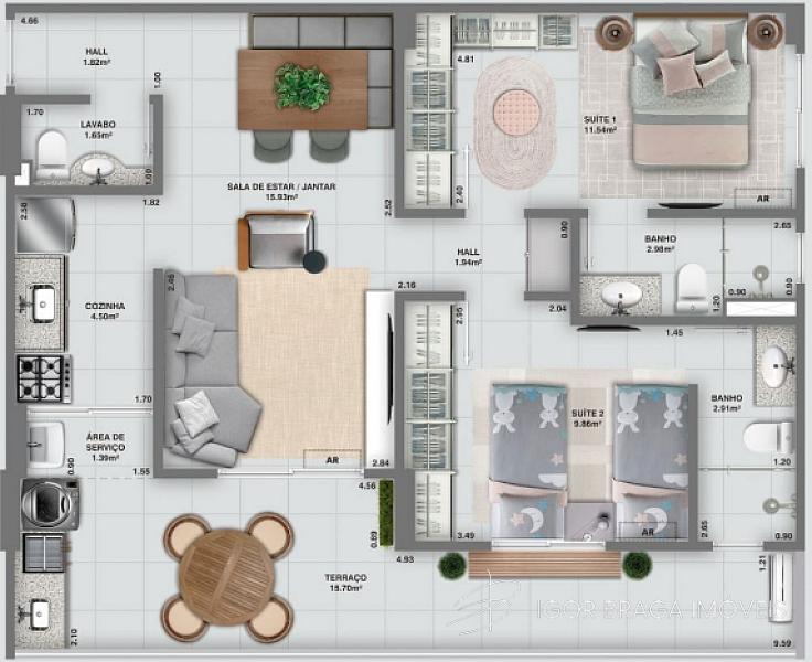 2 dormitórios (2 suítes)