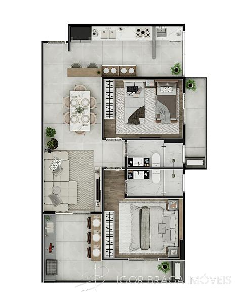 2 dormitórios (2 suítes)