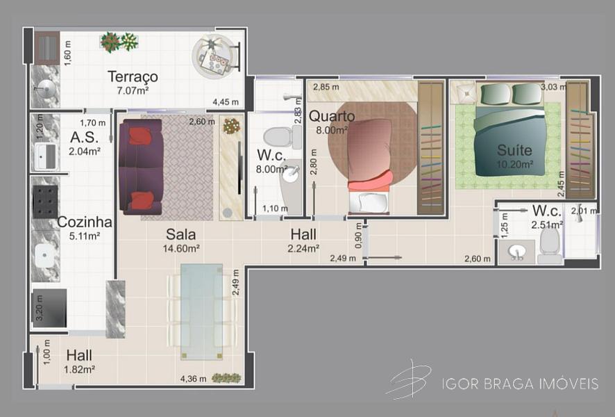 2 dormitórios (1 suíte)