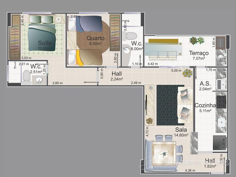 2 dormitórios (1 suíte)