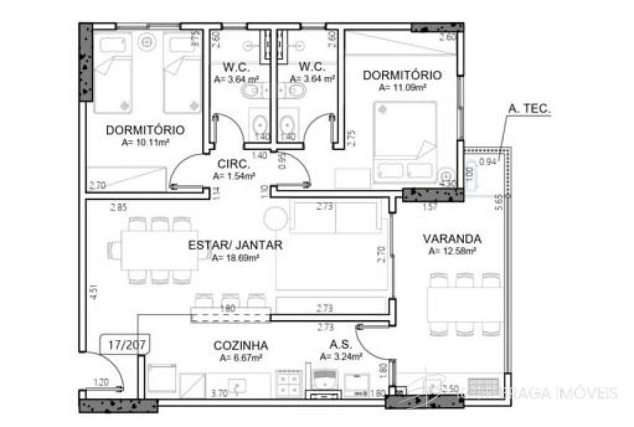 83,09 m² de área privativa
